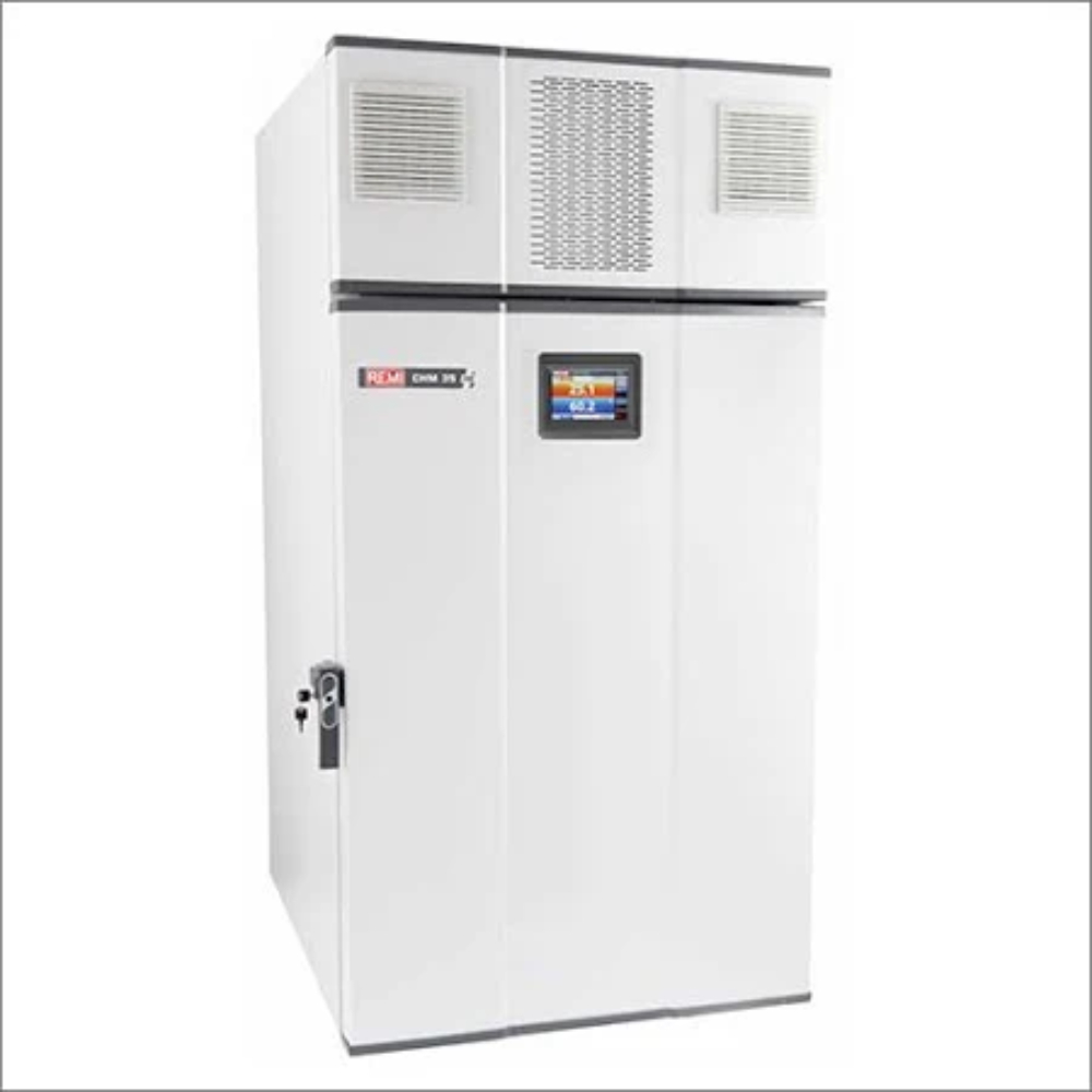 The Remi CHM 35 PLUS is a high-capacity humidity chamber designed for precise control and testing of temperature and humidity, essential for applications in electronics, electrical components testing, corrosion studies, and shelf life studies on various materials. It features a capacity of 1000 liters with internal dimensions of 800 x 800 x 1580 mm and external dimensions of 960 x 1370 x 2270 mm. The chamber operates within a temperature range of 10°C to 60°C with ±1°C accuracy and a humidity range of 40% to 95% RH with ±3% accuracy.