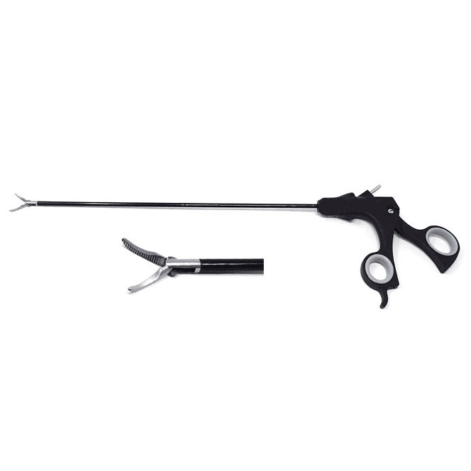 It is often used with its monopolar feature. Used by all specialties in all types of laparoscopic procedures. Its curve gives it visibility when the laparoscope is looking straight down the shaft of the instrument. This is the most commonly used dissecting forceps in laparoscopic surgery.